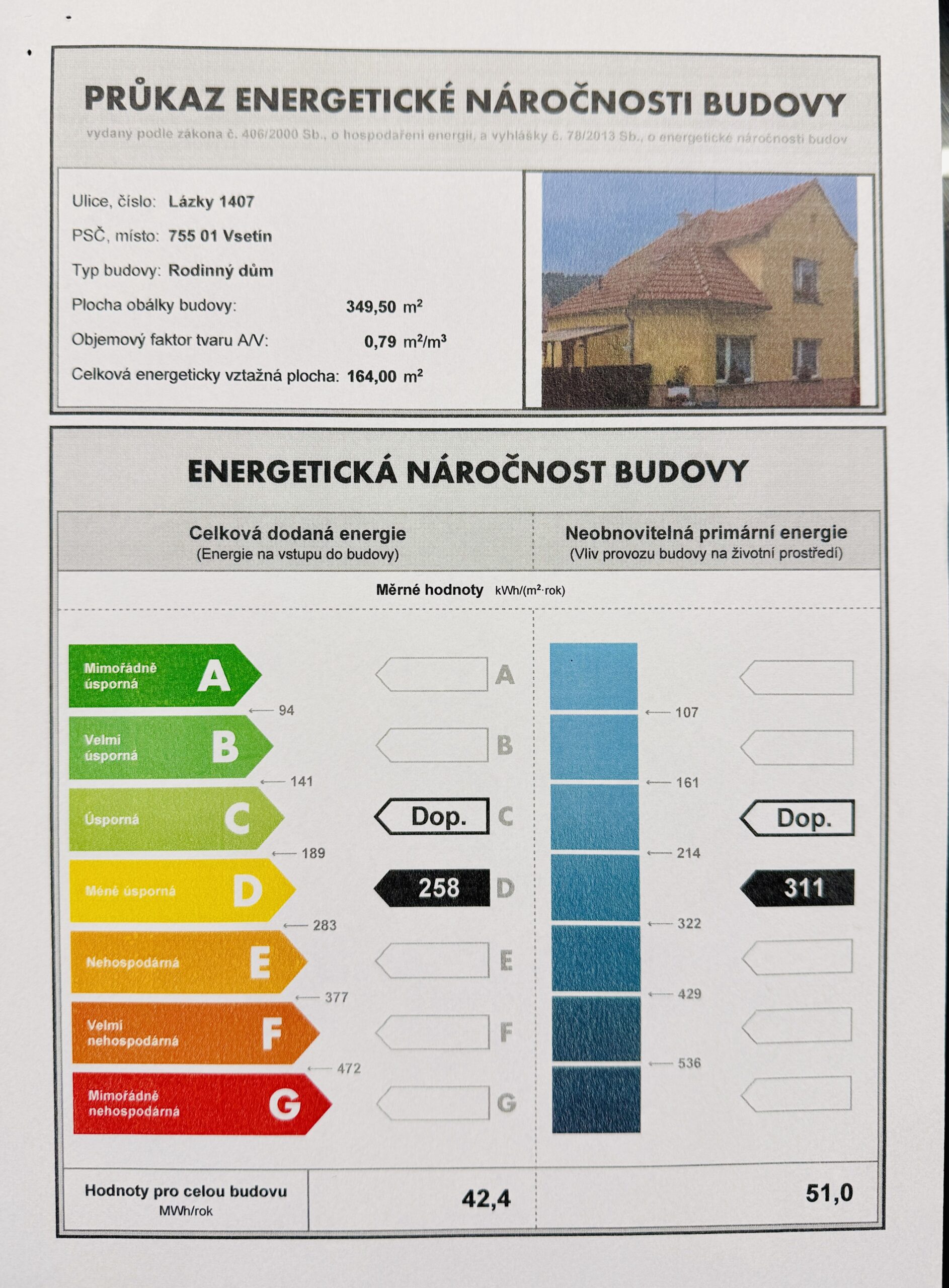 Energetická náročnost: třída D (dle vyhlášky č. 78/2013 Sb.)